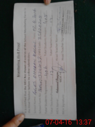 | Certified that this School was Inspected by the Undersigned MEA/DMO Today and the Information Stated Above is as Per Record. | |||||