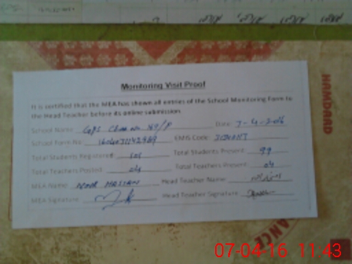 | Certified that this School was Inspected by the Undersigned MEA/DMO Today and the Information Stated Above is as Per Record. | |||||