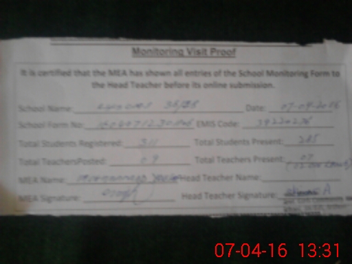 | Attendance Register | Head Teacher | MEA with School | Visit Proof |