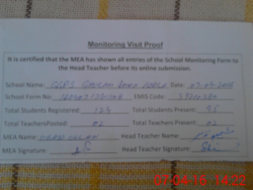 | EMIS Code: 39210380 | Name of School: GGPS GHULAM SHAH BOUDLA | |||