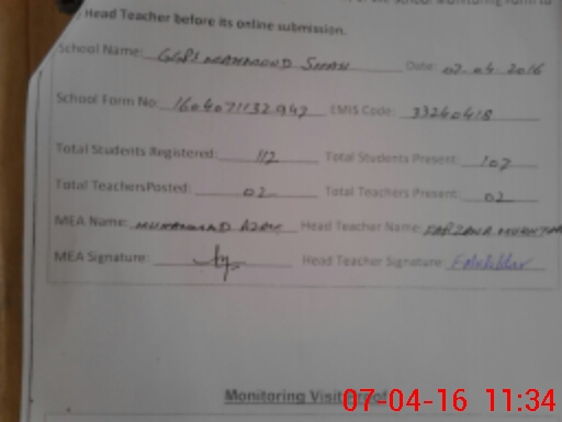 | EMIS Code: 33240418 | Name of School: GGPS MEHMOOD SHAH | |||
