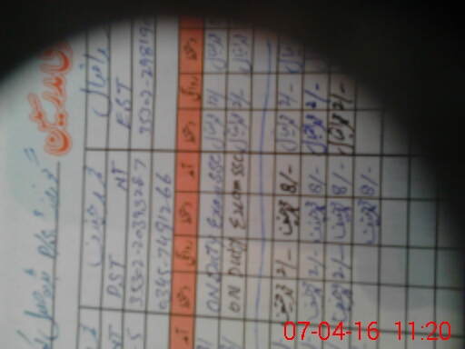 | CNIC | Full Name | Designation | R/C | Absence During Last Calender Month |