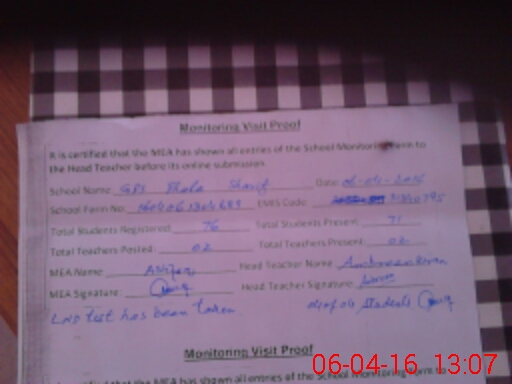 | Certified that this School was Inspected by the Undersigned MEA/DMO Today and the Information Stated Above is as Per Record. | |||||