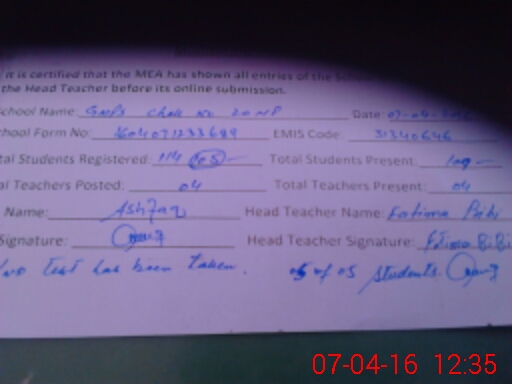 | EMIS Code: 31340646 | Name of School: GMPS CHAK NO.20/NP | |||