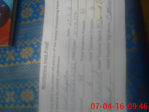 | Attendance Register | Head Teacher | MEA with School | Visit Proof |