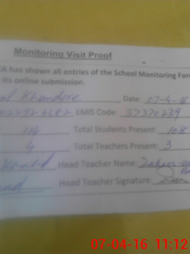 | EMIS Code: 37370239 | Name of School: GPS KHANDORE | |||