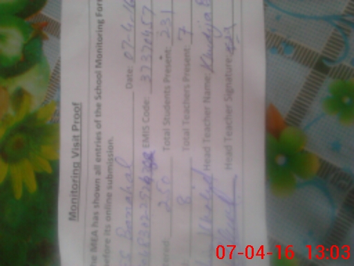 | Monitoring Date: 07-04-2016 | Start Time: 07-04-2016 12:45 PM | End Time: 07-04-2016 01:23 PM | Name of MEA: zI**** Kh**** | |