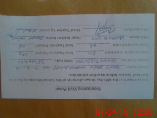 | Certified that this School was Inspected by the Undersigned MEA/DMO Today and the Information Stated Above is as Per Record. | |||||
