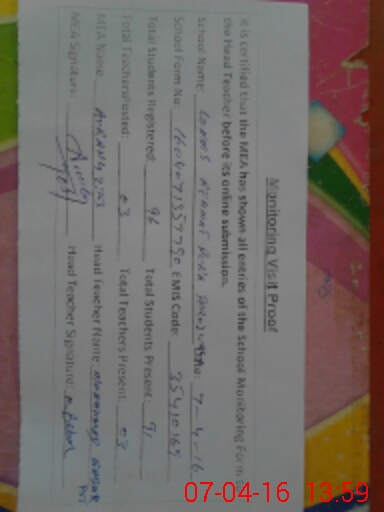 | Certified that this School was Inspected by the Undersigned MEA/DMO Today and the Information Stated Above is as Per Record. | |||||