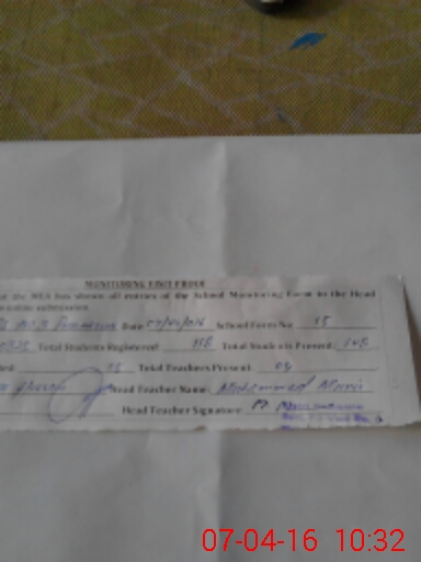 | Attendance Register | Head Teacher | MEA with School | Visit Proof |