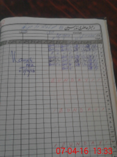 | CNIC | Full Name | Designation | R/C | Absence During Last Calender Month |