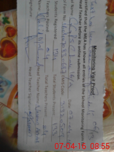 | EMIS Code: 31320509 | Name of School: GGPS CHAK NO.16/A | |||