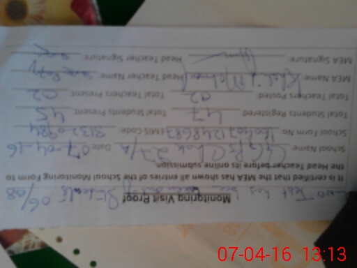 | Name: Ma**** Ra**** Designation: (School Headmaster's/Headmistress's) PST Phone/Cell Number: 03**** |