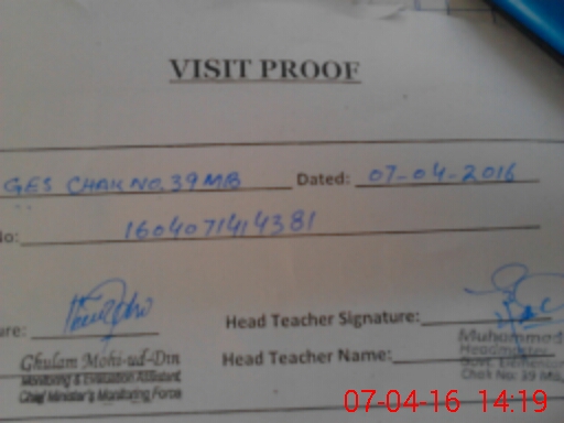 | EMIS Code: 38210255 | Name of School: GES CHAK NO 39 MB | |||