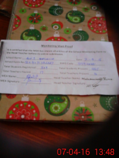 | Attendance Register | Head Teacher | MEA with School | Visit Proof |