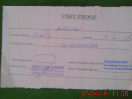 | Attendance Register | Head Teacher | MEA with School | Visit Proof |