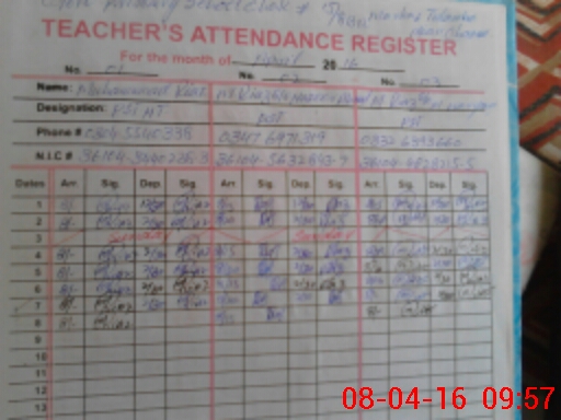 | Name: MU**** RI**** Designation: (School Headmaster's/Headmistress's) PST Phone/Cell Number: 03**** |