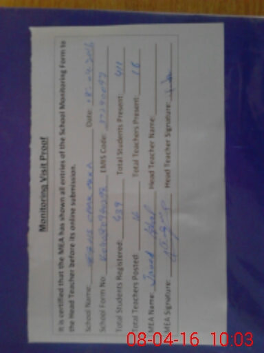 | Certified that this School was Inspected by the Undersigned MEA/DMO Today and the Information Stated Above is as Per Record. | |||||