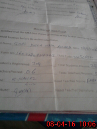 | Certified that this School was Inspected by the Undersigned MEA/DMO Today and the Information Stated Above is as Per Record. | |||||