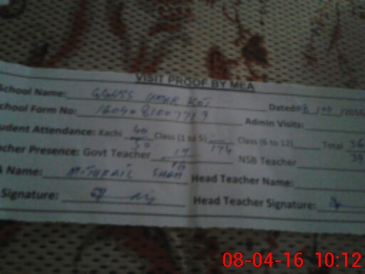 | Attendance Register | Head Teacher | MEA with School | Visit Proof |