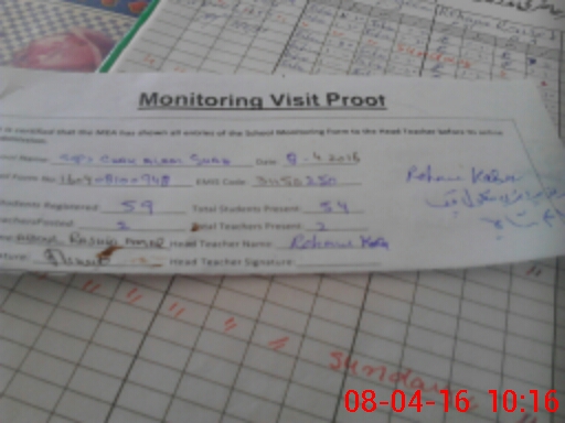 | Attendance Register | Head Teacher | MEA with School | Visit Proof |