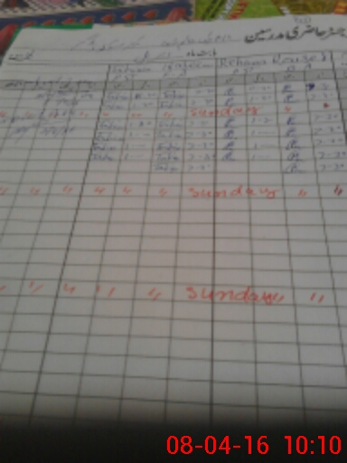 | CNIC | Full Name | Designation | R/C | Absence During Last Calender Month |