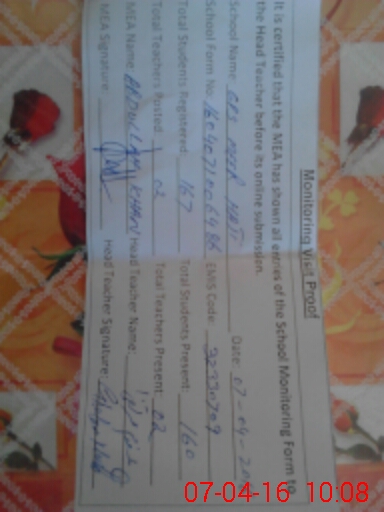 | Certified that this School was Inspected by the Undersigned MEA/DMO Today and the Information Stated Above is as Per Record. | |||||