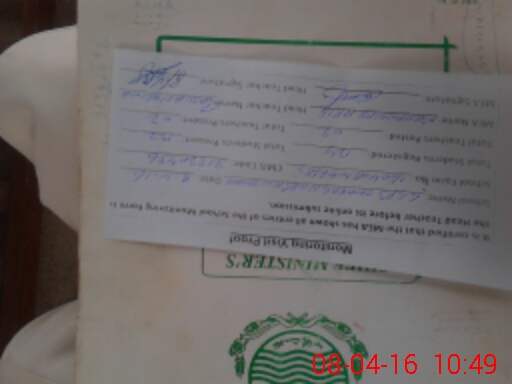 | Name: SA**** HA**** Designation: (School Headmaster's/Headmistress's) PST/PTC/JV Phone/Cell Number: 03**** |