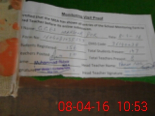 | Attendance Register | Head Teacher | MEA with School | Visit Proof |