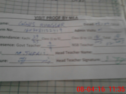 | Attendance Register | Head Teacher | MEA with School | Visit Proof |