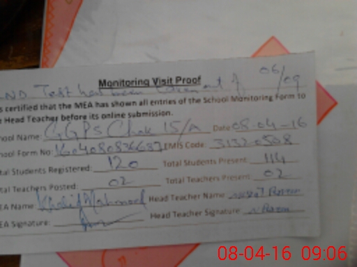 | EMIS Code: 31320508 | Name of School: GGPS CHAK NO. 15/A | |||
