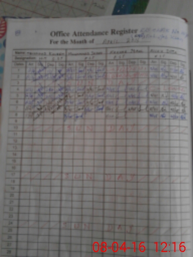 | CNIC | Full Name | Designation | R/C | Absence During Last Calender Month |