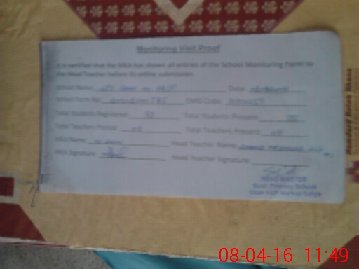 | Attendance Register | Head Teacher | MEA with School | Visit Proof |