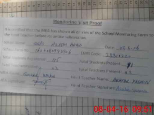 | EMIS Code: 38310220 | Name of School: GGPS AZEEM ABAD | |||
