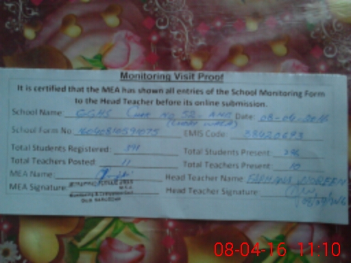| Certified that this School was Inspected by the Undersigned MEA/DMO Today and the Information Stated Above is as Per Record. | |||||