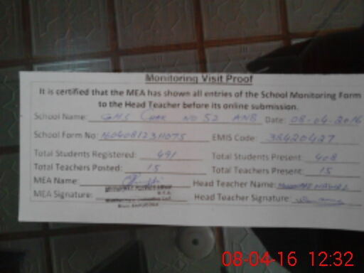 | EMIS Code: 38420427 | Name of School: GHS CHAK NO.52 ANB | |||
