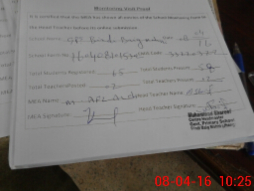 | Certified that this School was Inspected by the Undersigned MEA/DMO Today and the Information Stated Above is as Per Record. | |||||