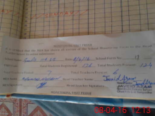 | Attendance Register | Head Teacher | MEA with School | Visit Proof |