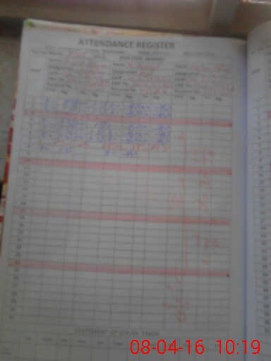| CNIC | Full Name | Designation | R/C | Absence During Last Calender Month |