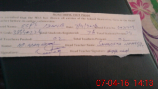 | Attendance Register | Head Teacher | MEA with School | Visit Proof |