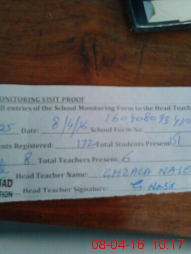 | Attendance Register | Head Teacher | MEA with School | Visit Proof |