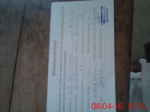 | Attendance Register | Head Teacher | MEA with School | Visit Proof |