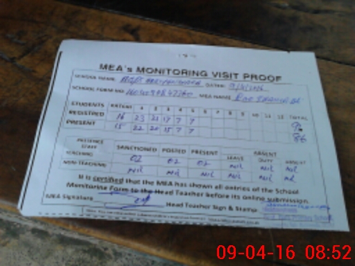 | Attendance Register | Head Teacher | MEA with School | Visit Proof |