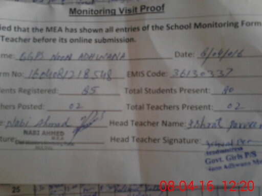 | EMIS Code: 36130337 | Name of School: GGPS NOON ADHWANA NEAR NAWAB PUR ROAD CHAK MAHANI | |||