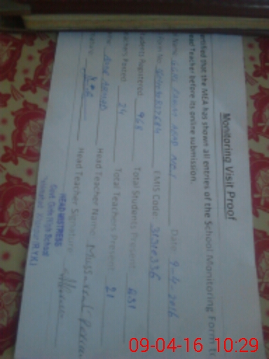 | Certified that this School was Inspected by the Undersigned MEA/DMO Today and the Information Stated Above is as Per Record. | |||||