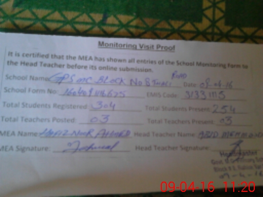 | EMIS Code: 31331115 | Name of School: GPS MC BLOCK NO. 8 THALI ROAD | |||