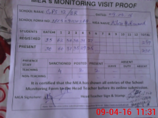 | Attendance Register | Head Teacher | MEA with School | Visit Proof |
