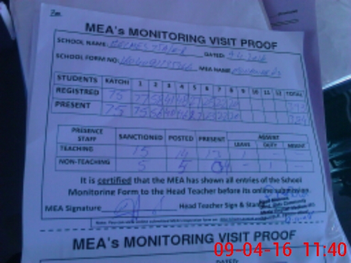 | Attendance Register | Head Teacher | MEA with School | Visit Proof |