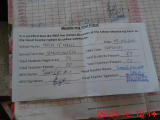 | Certified that this School was Inspected by the Undersigned MEA/DMO Today and the Information Stated Above is as Per Record. | |||||