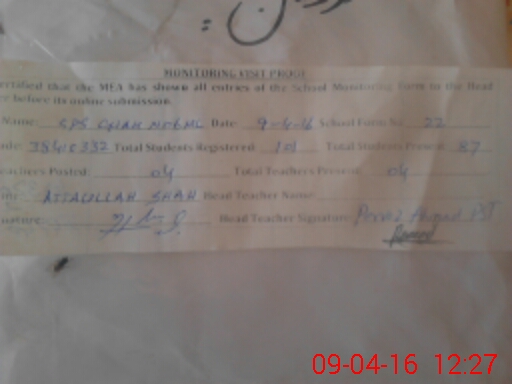 | Attendance Register | Head Teacher | MEA with School | Visit Proof |